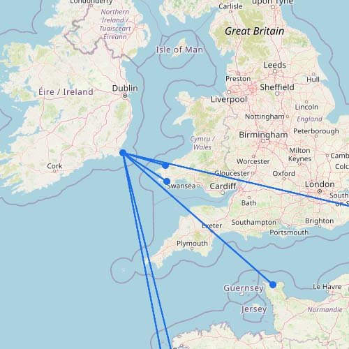 Ferry Map & Routes to Spain