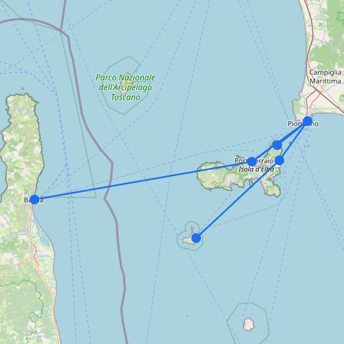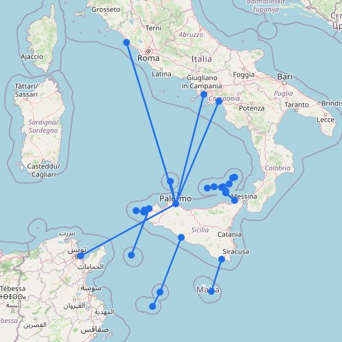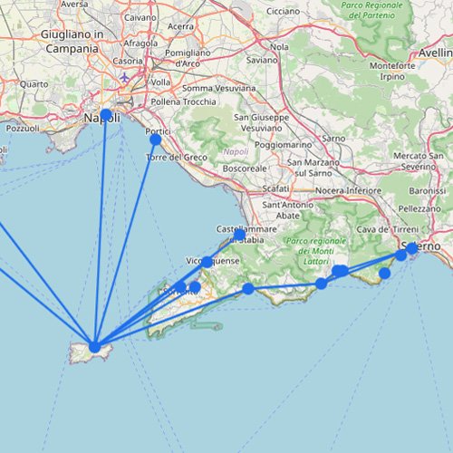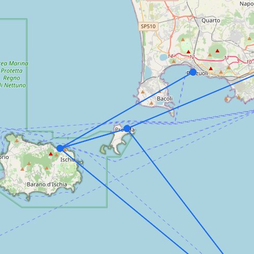 Clicca su un porto (marker) o una rotta (linea).