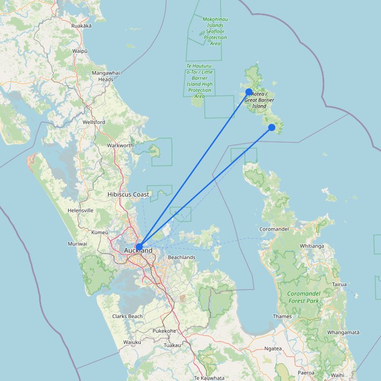 | Opua (Car Ferry) | Okiato | 10 minutes (Takes your car across the water). |