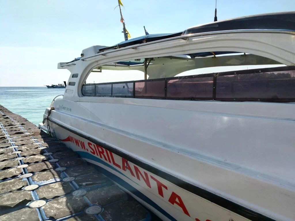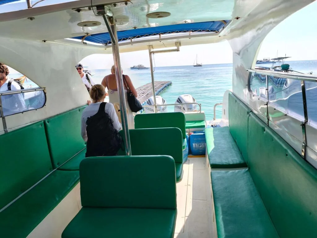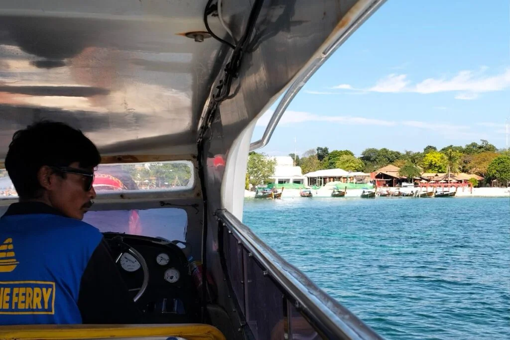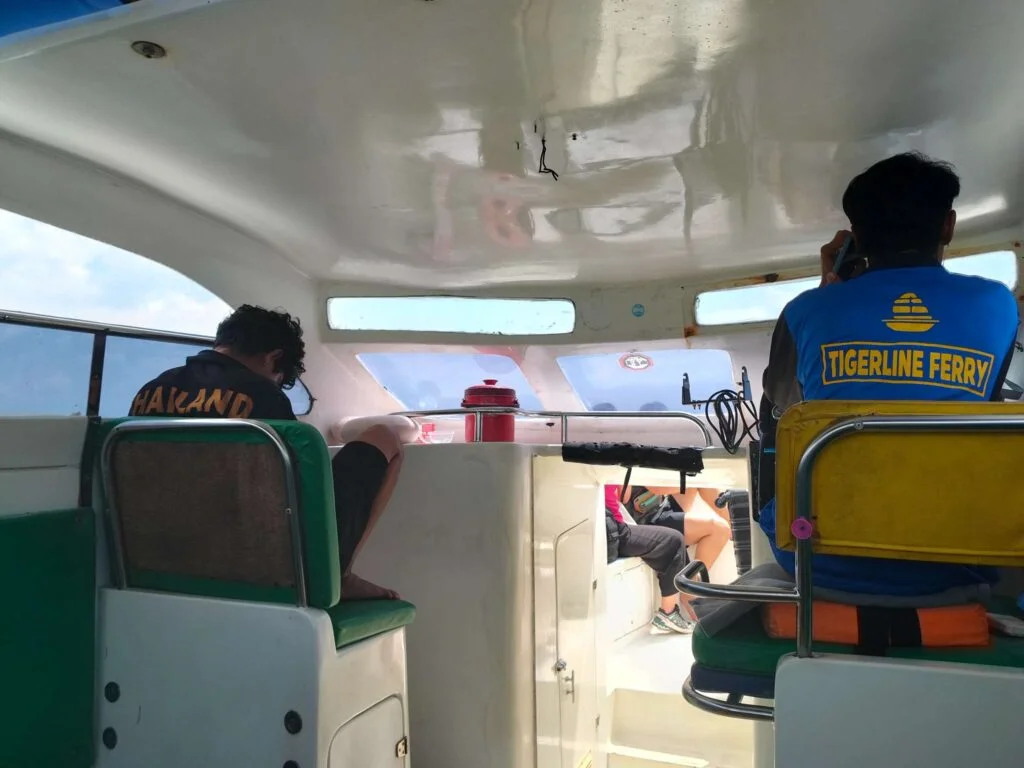 As the expected departure time approached, we walked to the pier, and not long after, the speedboat appeared. From the outside, you can’t really tell how many people fit inside, but the boat was quite full of backpackers.