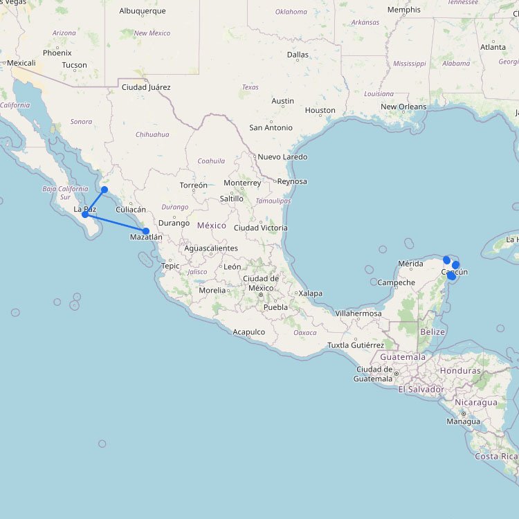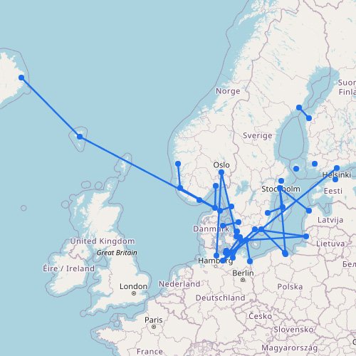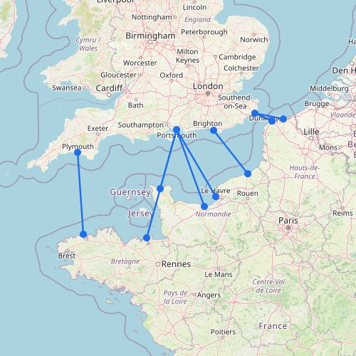 Click a port (marker) or route (line).